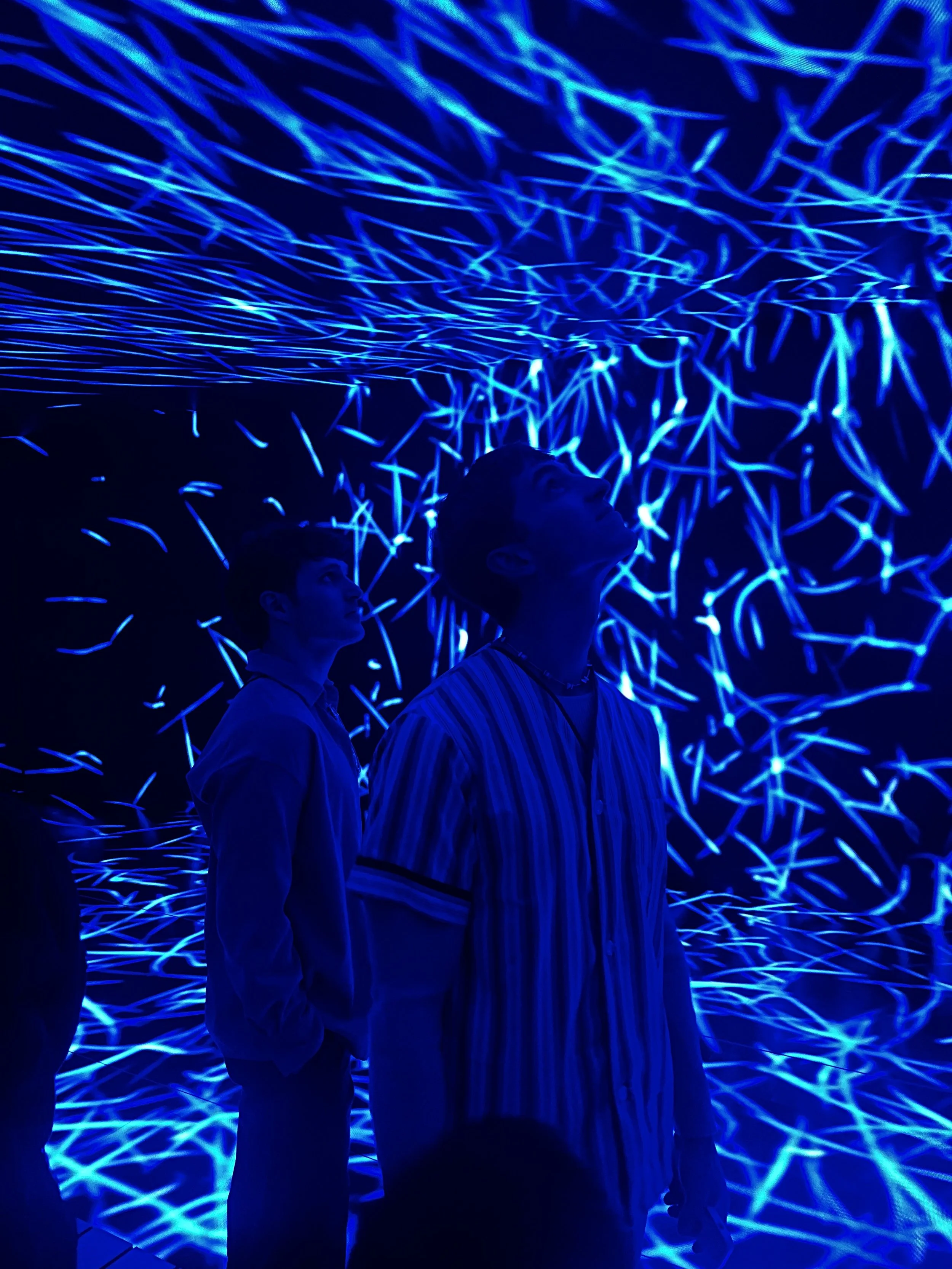 Tasked with representing water in a virtual space, Peter created a series of simulations that undulated and flow like schools of fish in the ocean. The result was an immersive experience where as you walked over the stage, schools of fish would flock around the bridge, overhead on the ceiling, and ultimately culminate in a rush of light and color towards the viewer.